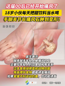 18岁的高中生小刘被推入急诊室,他的脚肿得无法穿鞋,关节疼痛让他泪流满面。身体里的尿酸值高达670μmol/L,关节已经出现痛风石。